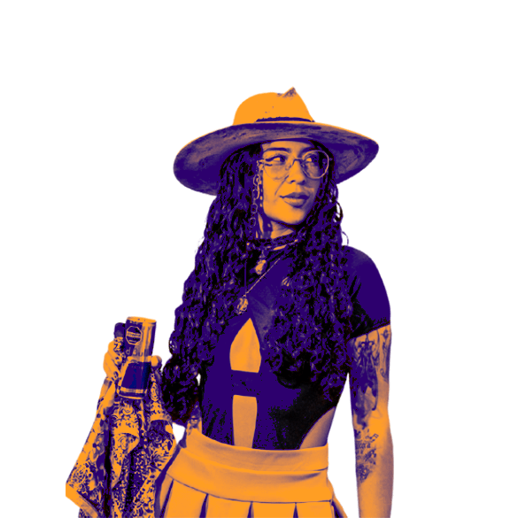 Artista caleñísima que fusiona funk, R&B y electro, con influencias de Erykah Badu y Amy Winehouse. Compone en español con toques en inglés sin perder su esencia local. Su música busca transmitir emociones y conectar, combinando color, energía y excentricidad en experiencias donde lo musical, lo visual y lo estético se entrelazan con fuerza y autenticidad.